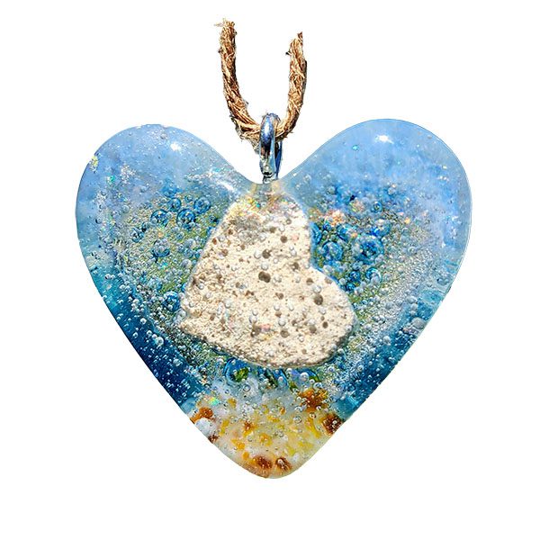The Pet Passages Fillable Glass Memorial – Heart. This is a hand crafted glass memorial that can hold a small portion of your pet’s cremated remains. In the crafting of this art piece, we use dichroic glass which adds a shiny sparkle to each piece. Within the main heart you can see a small heart chamber that you can fill with a portion of your pet’s ashes and/or fur.  Unlike other glass memorials that require you to send your pet’s ahes out to be hand crafted, these are pre-made and self fillable. These pieces can be worn as a pendant or carry them on your person in a pocket or purse or add a ribbon to the bail and hang on a Christmas Tree or in a place where natural sunlight can illuminate them. So many options.